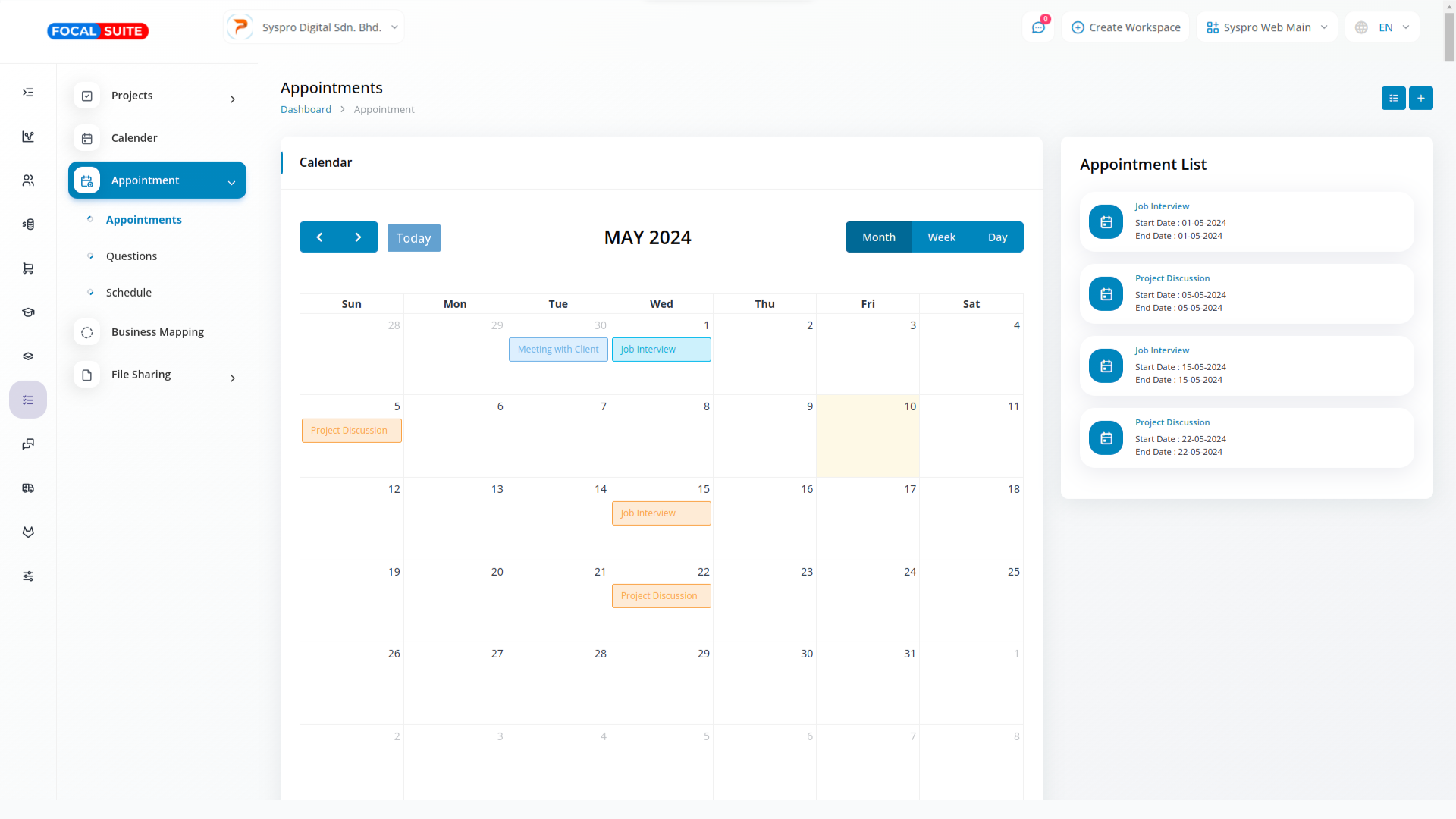 In the appointment section, you can easily create appointments. It includes a calendar button that displays all scheduled appointments and changes color based on their status. Additionally, it features a copy link button, allowing users to share the appointment form for others to fill out effortlessly.