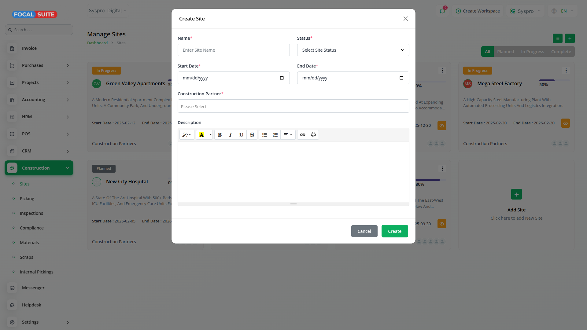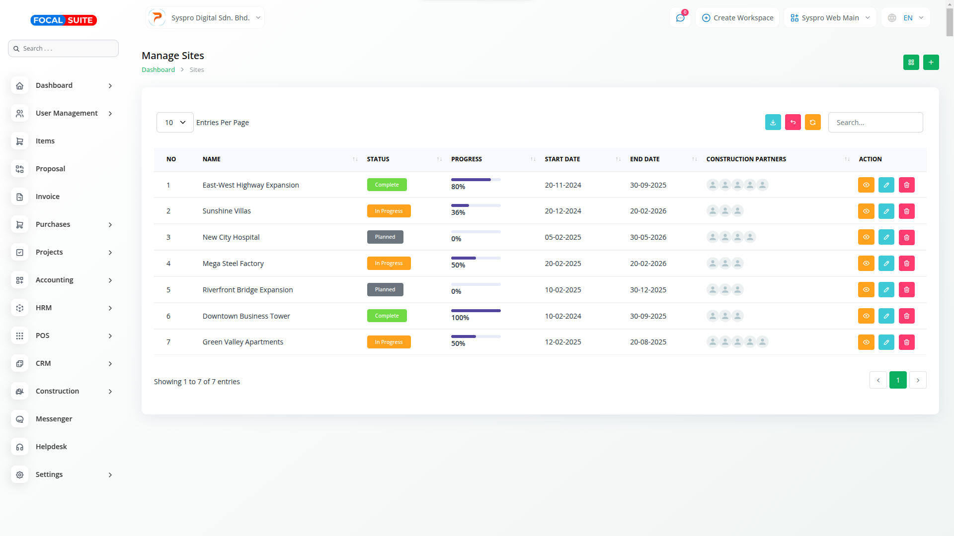 Easily manage construction projects, monitor progress, and improve team collaboration with Focal Suite’s Construction Management module.