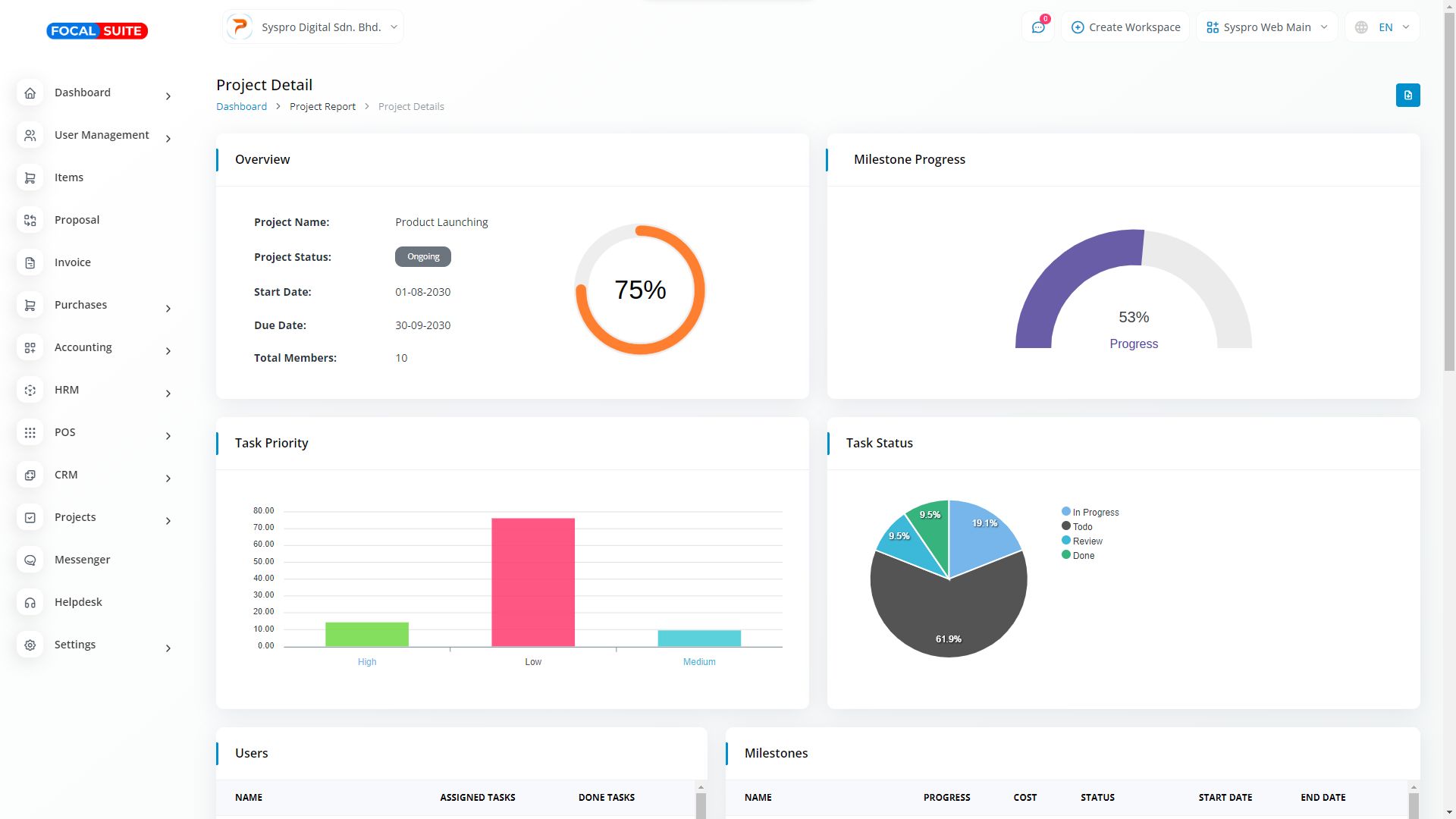 Attach cost and summary to milestones and change the status through the drop-down menu. Get a tab on recent activities of a project and also a graph about progress. Along with that, you can check your tasks’ details under project details with the help of the Gantt Chart.